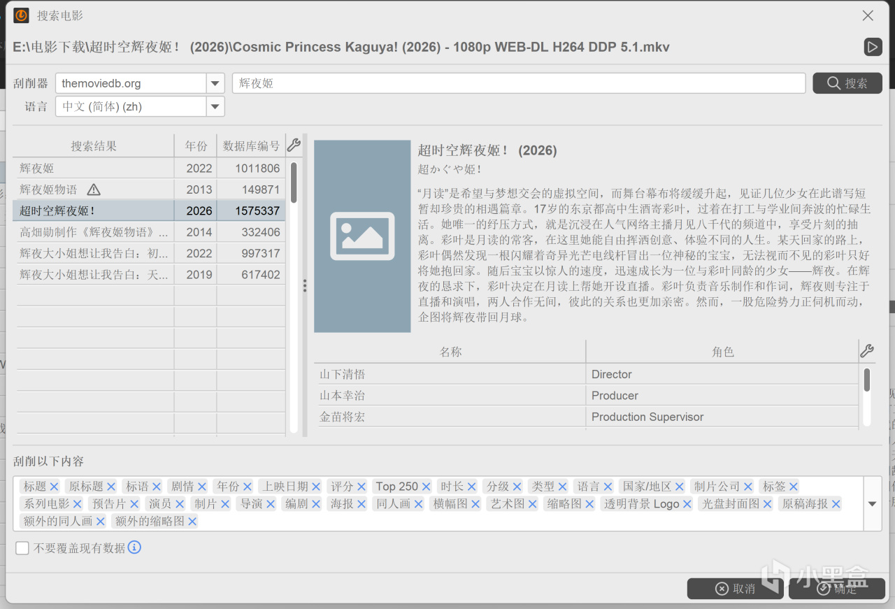 然后搜索&刮削,名字一开始要准确,要不然就找不到,或者自己输一下名字,选择对应的资料。