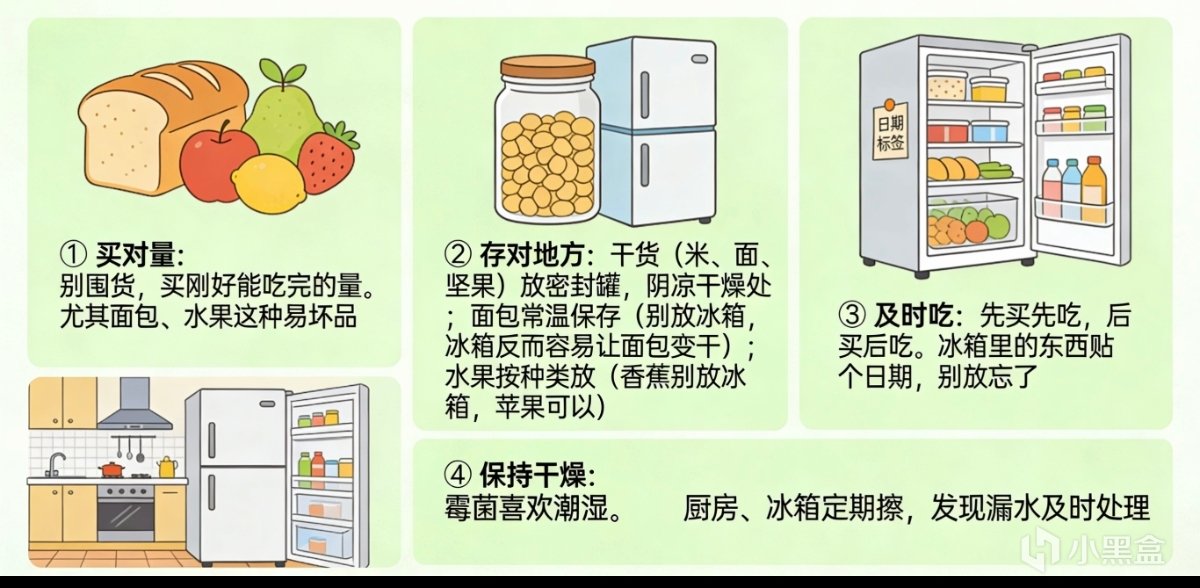 别囤货,买刚好能吃完的量。尤其面包、水果这种易坏品。