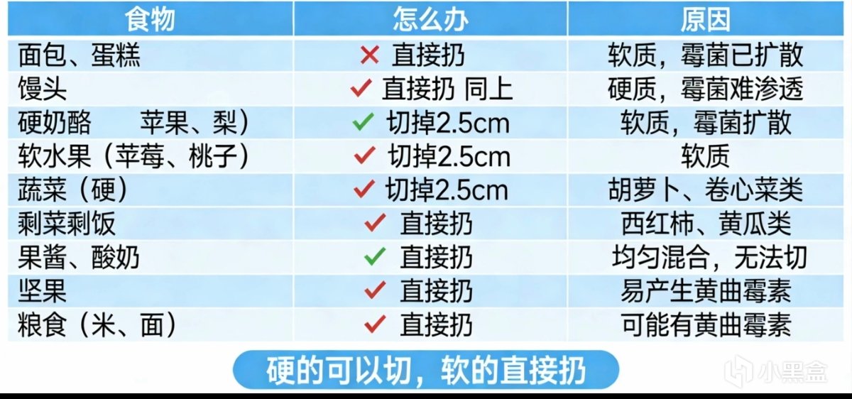 更重要的是:这些食物水分高,霉菌产生的毒素会随水分扩散到整个食物里。