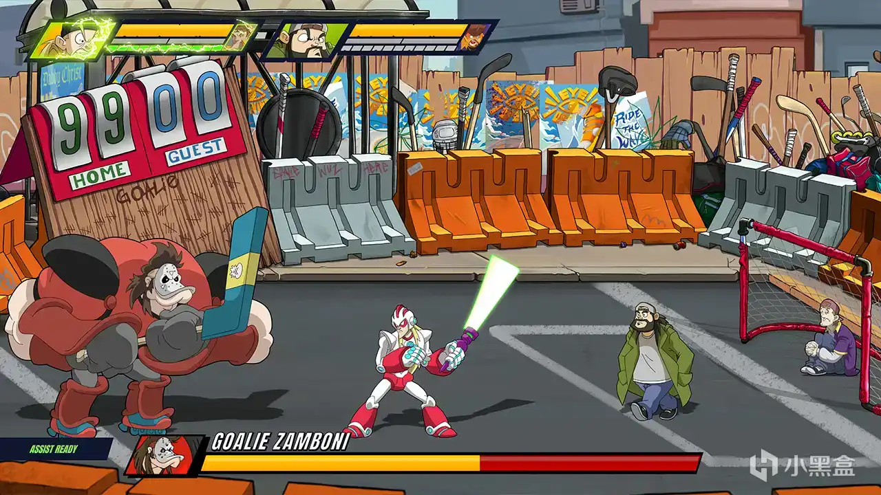 在《Jay and Silent Bob: Chronic Blunt Punch》这款双人合作的横版卷轴清版动作游戏中化身杰与沉默鲍勃,穿越View Askewniverse的街头与购物中心,杀出一条血路,释放眼花缭乱的不羁连招与必杀技,召唤特殊角色助阵战斗。你需要调动每一丝由大麻激发的创造力,才能突破挥舞冰球棍的暴走少年团、便便恶魔、带着宝宝的嬉皮士和脾气暴躁的老牌冰球运动员,并打败那些从电影中走出来的巨型头目。 本作融合了惊艳的风格化手绘动画、角色设计、炫酷的格斗场面和硬核台词。我们的英雄从新泽西郊区的快停便利店开启史诗冒险,直闯笼罩城市的神秘邪恶力量核心——一座神秘的购物中心。 无论是单人游玩,在角色中切换,还是与死党同屏合作,你都会拥有畅快的必杀技与炸裂连招体验。屎尿屁元素拉满的清版战斗游戏,预告不要在吃饭的时候看。
