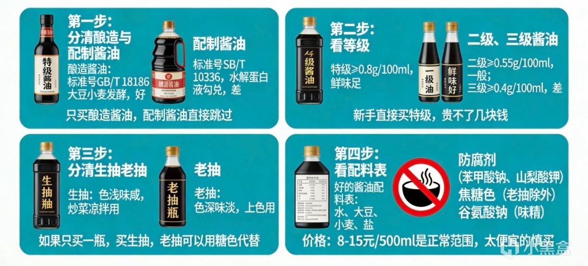 第一次自己做饭,走进超市调料区,你可能会当场愣住: 生抽老抽味极鲜……不都是酱油吗?怎么还有特级、一级?配料表里一堆看不懂的东西,到底买哪个?货架上从几块钱到几十块钱,区别在哪?看完今天这篇文章,让你去超市不再迷茫,买对不买贵。