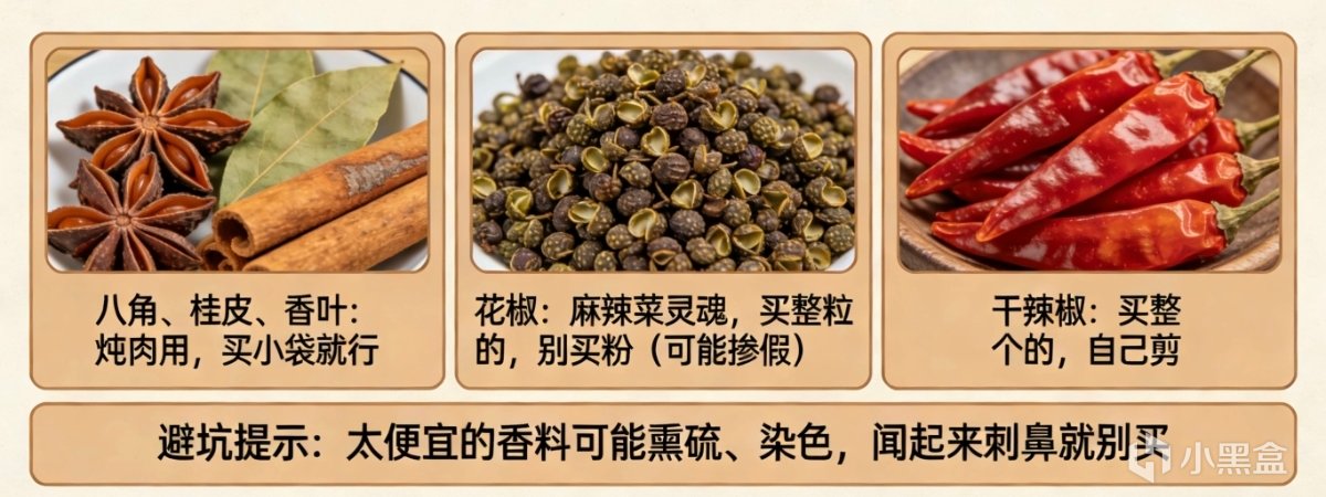 八角、桂皮、香叶:炖肉用,买小袋就行