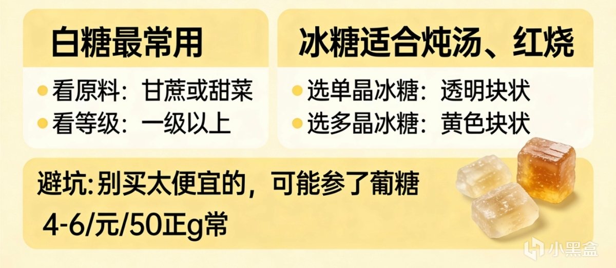 冰糖:选单晶冰糖(透明块状)或多晶冰糖(黄色块状)