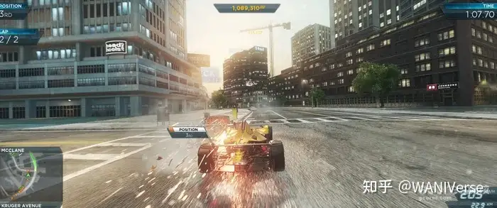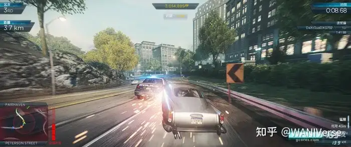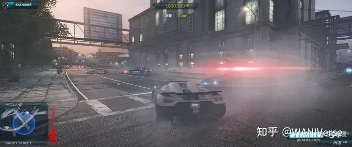 《最高通缉》的混乱,是同仁的。它对所有 AI 都一样。尤其是你跑最高通缉比赛的时候,那些黑名单车辆,甭管他们是不是“城里最好的车手”,他们一局平均也要失误个五六次。他们会打滑、会失误、会撞飞五六次,而且这几乎和你的频率是持平的。所以你并不用担心像后面某些《极品飞车》一样,比如《不羁》,你只要失误一两次,几乎就追不回来了。