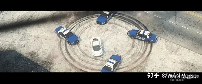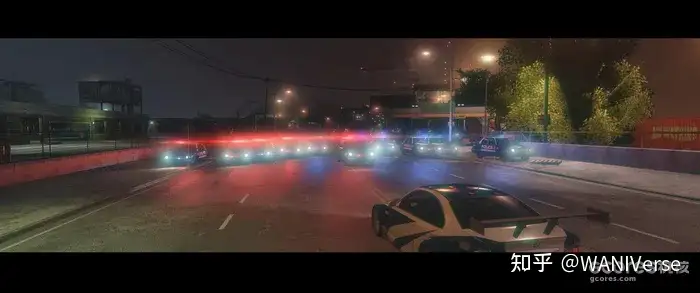 几乎可以说,《最高通缉》里面各种比赛的开场动画,就不存在几个正常的。都像是嗑嗨了一样做出来的。每个,或者不能说每个吧,起码 90% 的开场动画,都像是你磕了点什么以后开车的效果。要么就是警车飞天了,要么就是像变形金刚一样,要么就是整个世界的镜头语言都很抽离,像《GTA5》里崔佛嗑了以后的视角一样。