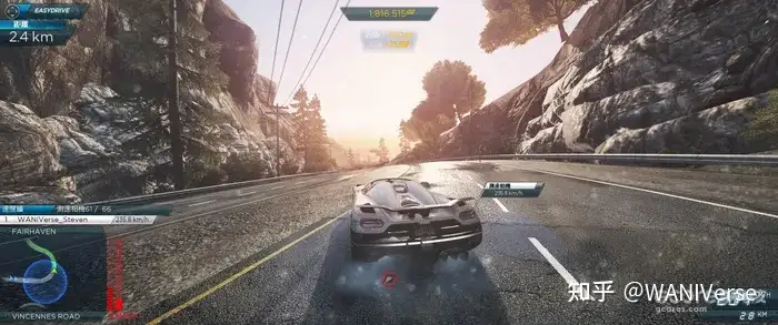 但好的地方就在于,它极其自由。你爱开什么就开什么,它没有任何限制。然后你在解锁最高通缉以后,就可以去和他一对一比赛。接下来把他的车撞烂,在比赛赢过他以后,把他的车给撞烂,然后这辆车归你所有。这一点,就让整个游戏自由无比。