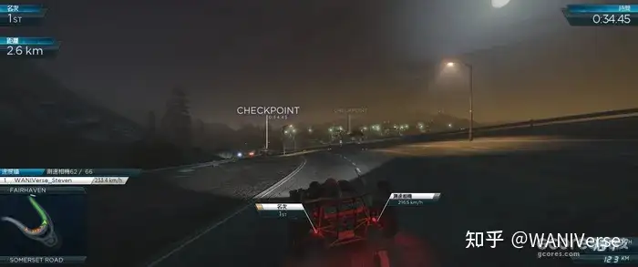 但是这反而促成了它的一个优点。这是把双刃剑。一方面,它不像《热力追踪》那种很成体系、很能看清路、很讲究实时精确决策的比赛方式;另一方面,这一座就是突出一个疯狂。你看不清,其实正是它的风格所在。你看不清,就会导致整个游戏非常刺激。这种刺激和之前玩《热力追踪》之类的游戏都是不一样的。