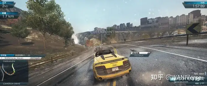 虽然说有的时候,《17》的车确实非常脆皮。很多时候你在别的《极品飞车》里,可能只是轻轻侧撞一下护栏、蹭一下墙,不会撞毁;结果在这一座里,可能就直接损毁了。虽然这方面确实会有让你不爽的时候,但由于它整体的平衡机制够强,比赛起来你会觉得,撞了也就撞了,不是那么重要。