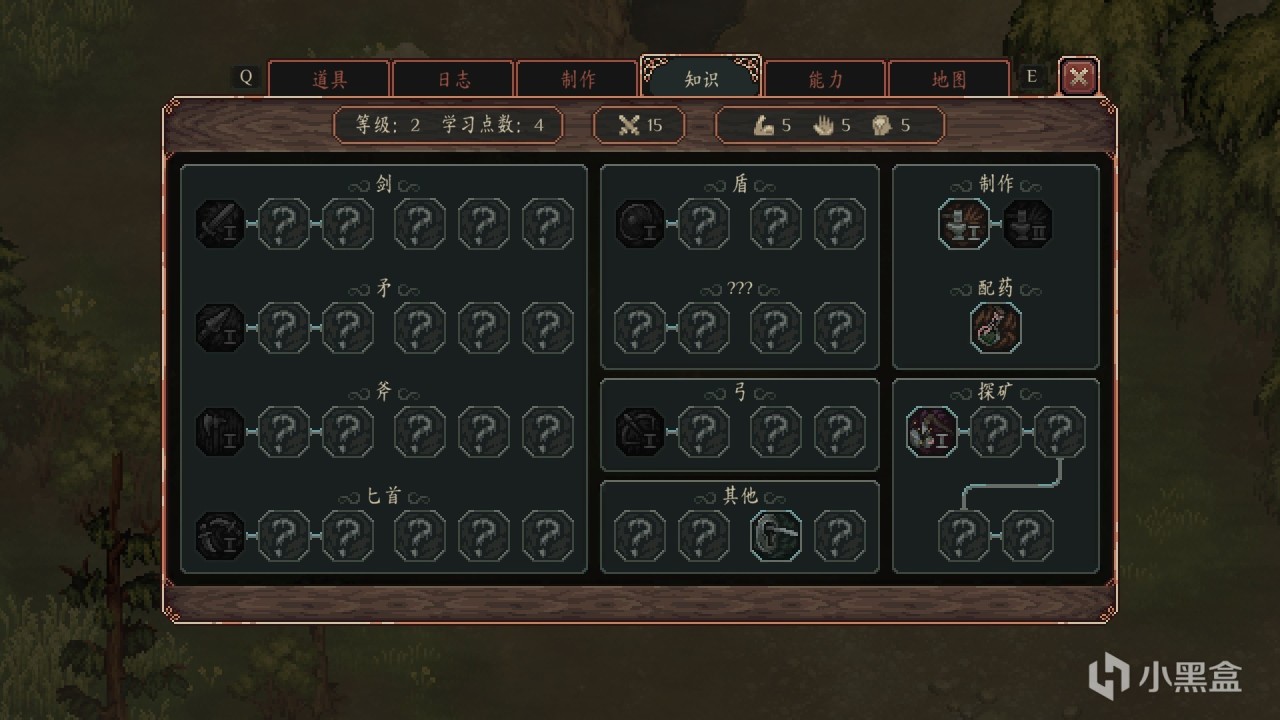 游戏每次升级能恢复全部血量,对于续航十分实用,还能获得学习点数来提升能力值和解锁新知识。这里要注意一下,知识和武器常常需要达到一定的属性值才能学习、装备,所以为了厉害的知识和武器尽力提升属性吧。