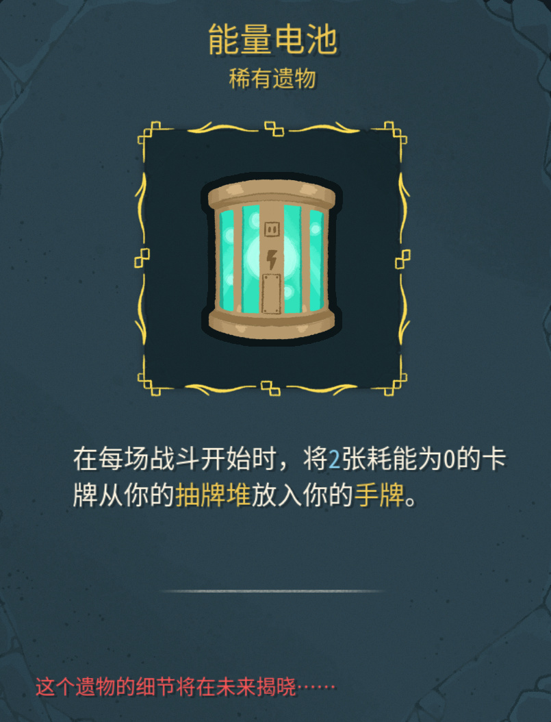 爪擊流最不想看到的就是先來萬物一心,然後爪擊這些沉底,能量電池很好的減少了這種情況出現。開局可以穩定上手兩張零費卡,是一個不錯的補強遺物。