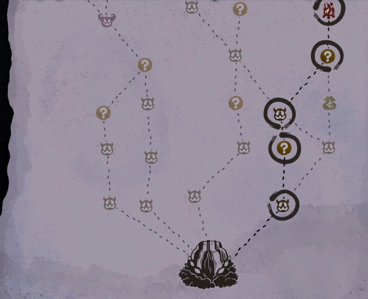路線走右邊的問號比較多的路,不是走最右邊商店那個分叉路哦,問號火堆發育會更穩妥一些。第一個問號選卡+100金幣,第二個問號選8張卡選2,可以拿到爪擊和全息影像。
