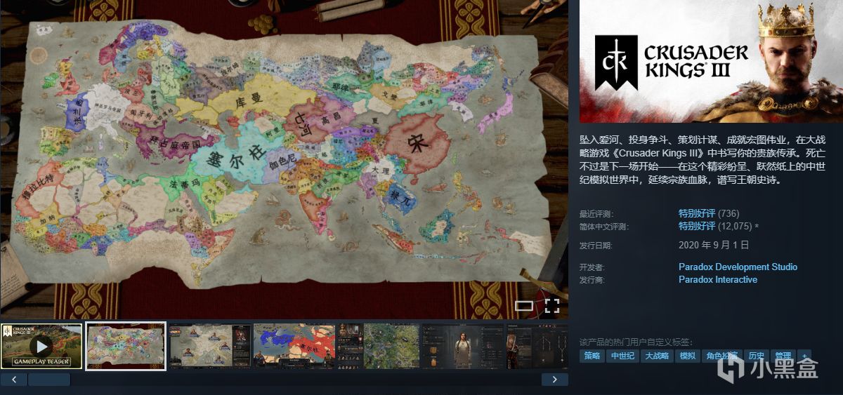 坠入爱河、投身争斗、策划计谋、成就宏图伟业,在大战略游戏《Crusader Kings III》中书写你的贵族传承。死亡不过是下一场开始——在这个精彩纷呈、跃然纸上的中世纪模拟世界中,延续宗族血脉,谱写王朝史诗。