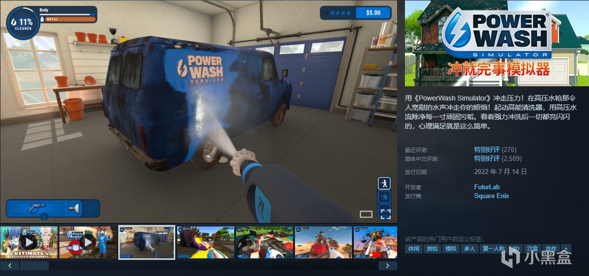 用《PowerWash Simulator》冲走压力!在高压水枪那令人宽慰的水声冲走你的烦恼!起动高能清洗器,用高压水流除净每一寸顽固污垢。看着强力冲洗后一切都亮闪闪的,心理满足就是这么简单。