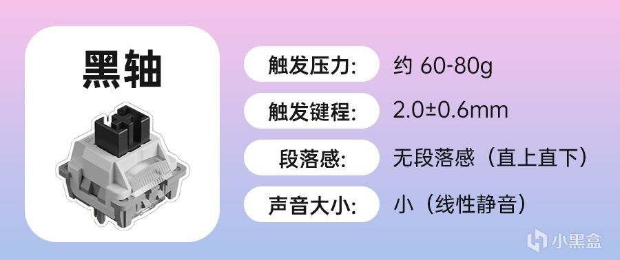 黑轴:按下去的行程短,触发和回弹都很快,但按压力度大,长时间用会觉得费力,更适合打游戏。