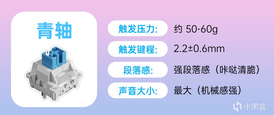 青轴:声音很大,段落感也特别明显,被很多人称为“舍友快乐轴”,打字的时候很有成就感,但声音太大,不适合在图书馆、办公室用。