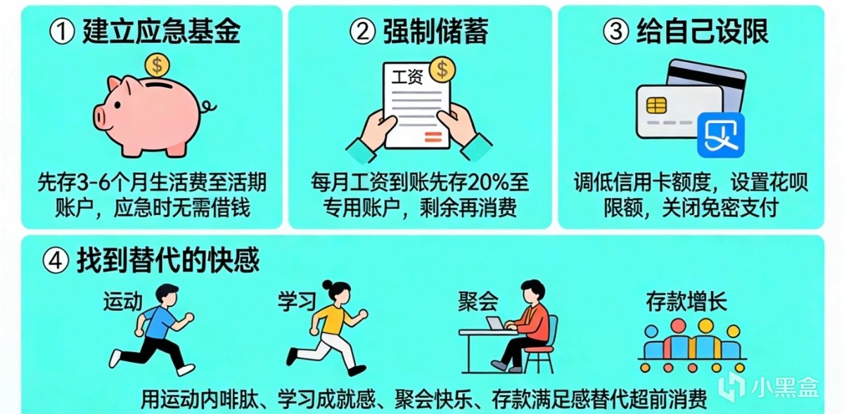 ④ 找到替代的快感:超前消費的快感來自即時滿足。可以用其他方式替代: