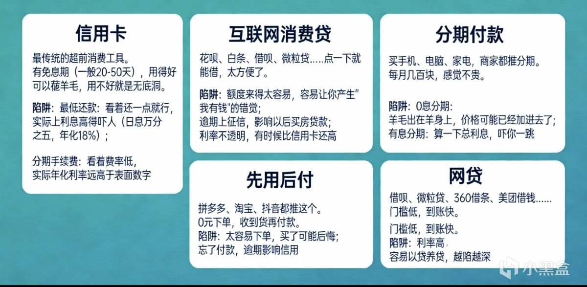 信用卡 最傳統的超前消費工具。有免息期(一般20-50天),用得好可以薅羊毛,用不好就是無底洞。