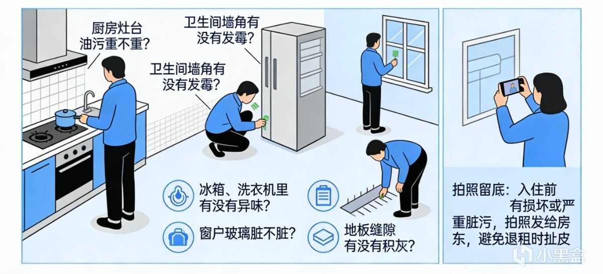 拍照留底:如果入住前有損壞或嚴重髒污,拍照發給房東,避免退租時扯皮。