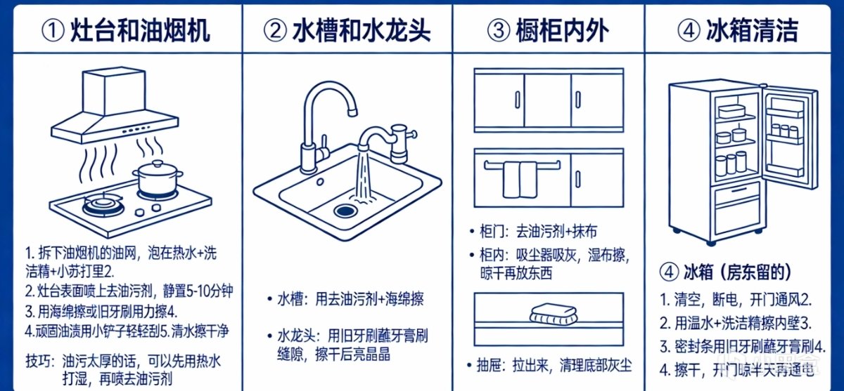 推開門,迎接你的可能是前租客留下的“驚喜”:油膩的竈臺、發黴的牆角、積灰的角落、還有一股說不清的味道。想住得舒服,第一件事就是徹底搞衛生。但看着滿屋子的髒亂,完全不知道從哪下手。今天帶你走一遍租房入住清潔的全流程,讓你用最少的時間和精力,把一個陌生的房子變成乾淨的家。