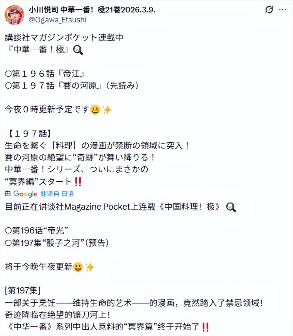 而從冥界篇的劇情展開來講,《中華小當家!極》的後續劇情發展大概率不會出現太多問題。倒不如說,不少文化作品中都有主角進入冥界歷練,提升戰力後再度歸來的橋段。哪怕小川悅司實在不會構思劇情,也能照着其他作品的公式來寫。