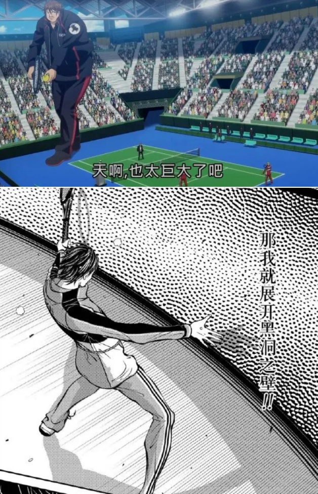 就比如運動漫畫《新網球王子》中,各種非人類層出不窮,不僅有巨人,還有能夠掌控黑洞之力的仙人,比賽勝負也早已脫離網球規則,全看誰的超能力更加強大。