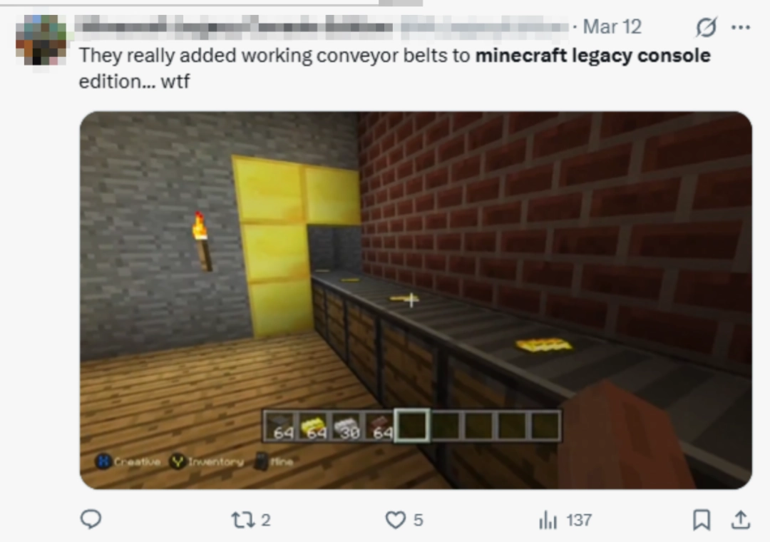 畢竟,基岩版的惡評相當之多,不管是各種各樣的BUG,還是跟JAVA版本幾乎完全不一樣的紅石特性,都很難爲老玩家接受——許多人認爲,也許當初的主機版就不該如此草率地向基岩版進化。