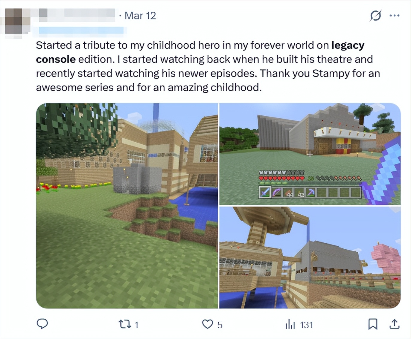 有不少人選擇將社區移植的原主機版打包下載,並在裏面重開一週目,以此重溫自己的童年,重溫逝去的主機版時代。實際上,不少人都表示自己下載泄露版,就是爲了回味當初第一次打開《我的世界》時的版本。