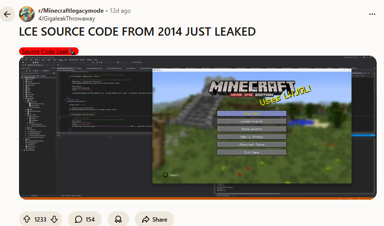 2月底至3月初,一份主機板《我的世界》的源代碼開始在網上流傳,起初的來源可能是4Chan,而Reddit上也有人表示相關代碼是先在4Chan上流出了不完整的PlayStation 3版本,隨後又由其他人泄露了Xbox 360、Xbox One等版本。
