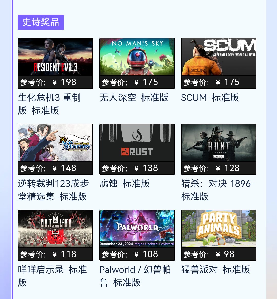 4.每個盒彈對應一件獎池內的獎品,中獎100%;本活動獎池獎品種類有限且隨機,您可能會抽取到重複遊戲獎品,請您理性購買。