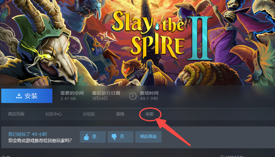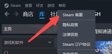 在Steam页面左上角找到「帮助」→「Steam客服」,查看客服案件。