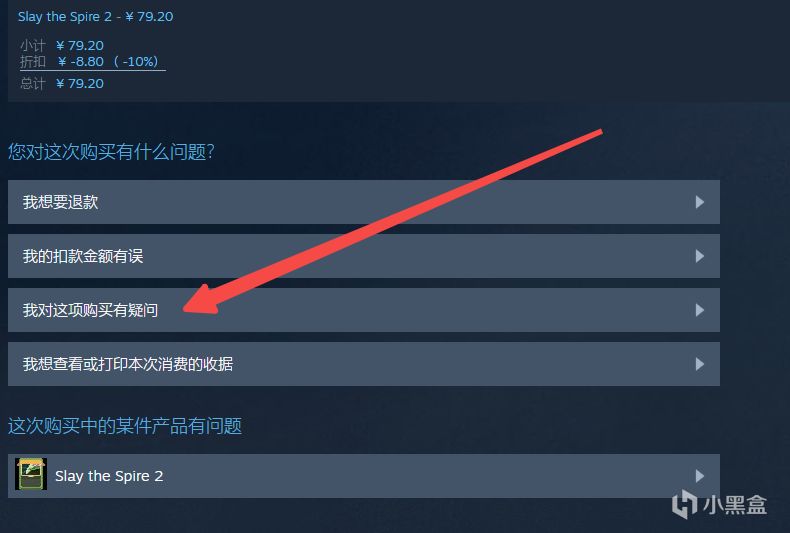 然后点击Steam右上角头像 → 「账户明细」→「历史消费记录」→ 选择有问题的游戏订单 → 「我对这项购买有疑问」。
