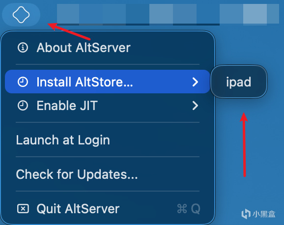 選擇你需要完成自籤的設備,我這裏是ipad,選中後會提示我們需要輸入Apple ID,填寫你自己常用的任意一個Apple ID即可,這裏相當於使用開發者權限來安裝一個自籤的app,缺點是每週都需要定期到電腦上使用altserver完成一次自籤。