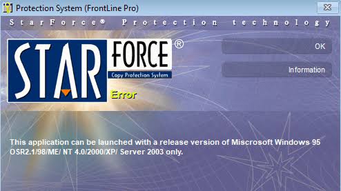 StarForce来自俄罗斯,它的理念很简单:既然要防破解,那就防到底。别的加密在用户态运行,StarForce则拥有和操作系统同级别的权限。它会禁用盗版玩家的所有虚拟光驱软件,甚至会导致光驱硬件损坏、系统蓝屏崩溃。