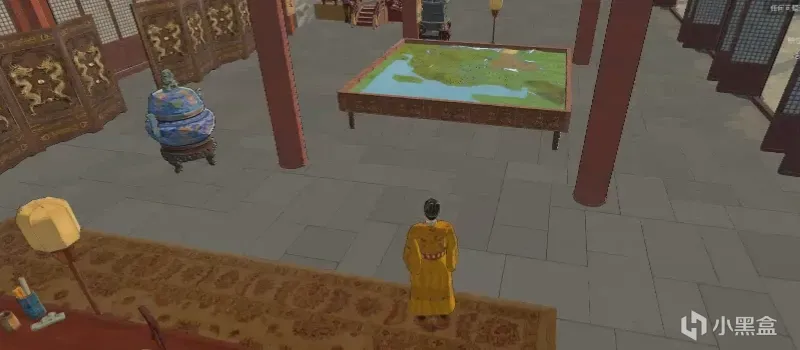 遊戲內的沙盤目前歷史放在皇極殿中(九州全輿圖位置說明,請忽略這兩個站在一起的太監……)