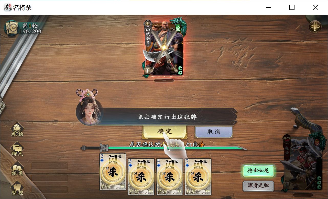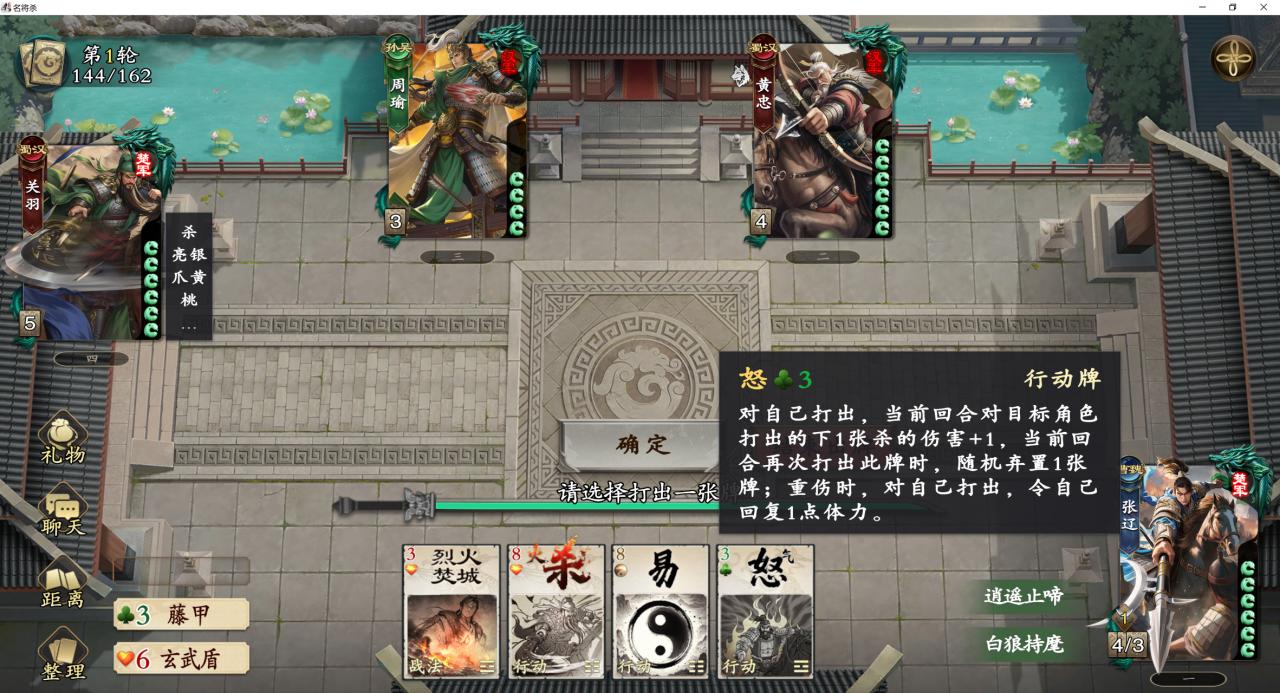 除去基础牌杀、闪、桃之外,酒变成了“怒”,还有一个可以当这四张手牌随意一张打出的“易”,像我这种经常手黑摸不到关键牌的人,有了这张牌的加入打起来就舒服很多。控牌手感大大增强;而且我玩到目前发现这个游戏的发牌机制还不错,不会让人某一个“大回合”全程动不了,那种被一直控到结束的无力感,相信玩过老杀牌的懂得都懂,这款就完全不会。