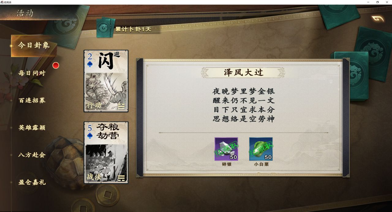 最后再来说说它的氪金机制,其实它也有着不少的氪金点,但是这些氪金点之中有不少都是可以通过肝来完成的。一上来游戏就送超多抽奖次数,登录每天还给送武将,日常任务随便做做,就能拿到武将碎片和抽奖券,玩个几天,就能解锁五六十个武将(一小时),大部分武将都能白嫖。