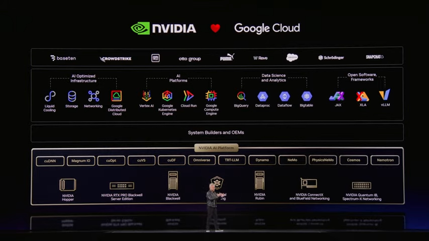接下来是英伟达的云服务战略,与全球三大公有云巨头谷歌云、AWS和Azure合作(P3-P6),英伟达提供最新的GPU和网络设备、机架系统,不过老黄与三家合作各有侧重,像谷歌偏重数据科学和开源生态比如JAX,与AWS合作侧重AI基建和PaaS服务,与Azure主要是企业级生产力。