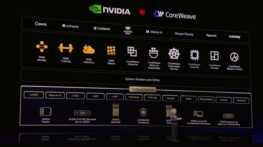 P11-P13是老黄介绍全新的推理时代和AI Natives概念,英伟达提供软硬一体的服务,P12老黄列举了GPT、o1和CC三个代表性的模型,老黄一方面给所有人提供硬件算力,另一方面想绕开谷歌、微软和亚马逊这些大厂的云服务,直接让亲儿子CoreWe**e对接专有云服务,这个想象力确实很大(欧洲那边也有个新的亲儿子Nebius)。
