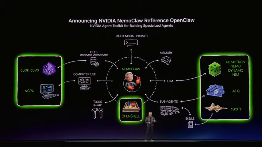 最后压轴的P20是英伟达的新龙虾,Agent会接管操作系统,同时连接了英伟达的cuDF接口调用数据,LLM作为大脑向下分发任务给子智能体,或者是调用cuOPT去做复杂的运筹优化计算,可能以后面向企业级用户会更多一些。