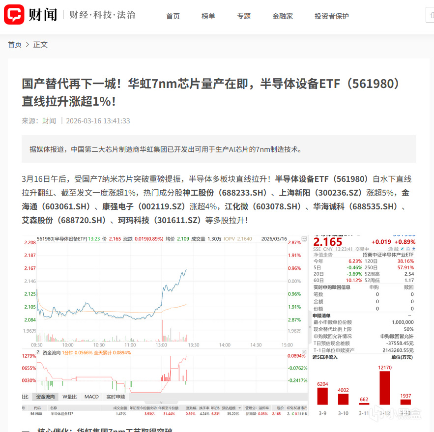 消息出来前,资金就已经嗅到了味道。据说跟踪半导体设备的ETF最近6天流入了近3个亿,大家都在押注这条国产替代的主线。毕竟,设备是半导体产业的基石,也是我们突破封锁的关键。
