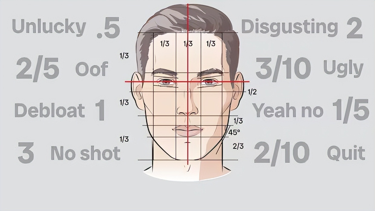 因为,这套评分体系实际相当残酷,它共8分总分附带段位评级,得到6至8分的少数是人间Chad;得到3至5分的,分别是下、中、上位普通人;最过分的是得2分的人类,会被归类到类似鱼人、兽人、欧格林人的亚人族;而1分则会被其他人建议原地重开:“活在世上就是在污染人类基因”。