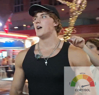 因此,“硬汉排位赛”引入了一个生理学概念“皮质醇”。皮质醇分泌过高,代表一个人尴尬、局促、破大防。于是,“硬汉排位赛”的录像和切片,被外网UP主做成了格斗集锦,双方的皮质醇表盘相当于角色血条,输家皮质醇指数爆表腿软,赢家低皮质醇指数浓度游刃有余。