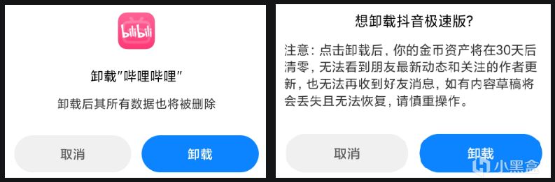 在系统里长按卸载抖音、抖音极速版、快手时,弹窗显示的竟然不是确认提示,而是一段挽留文案。