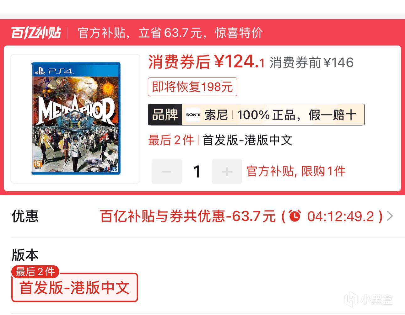 3.PS5港版中文遊戲《暗喻幻想》124.1元全新包郵