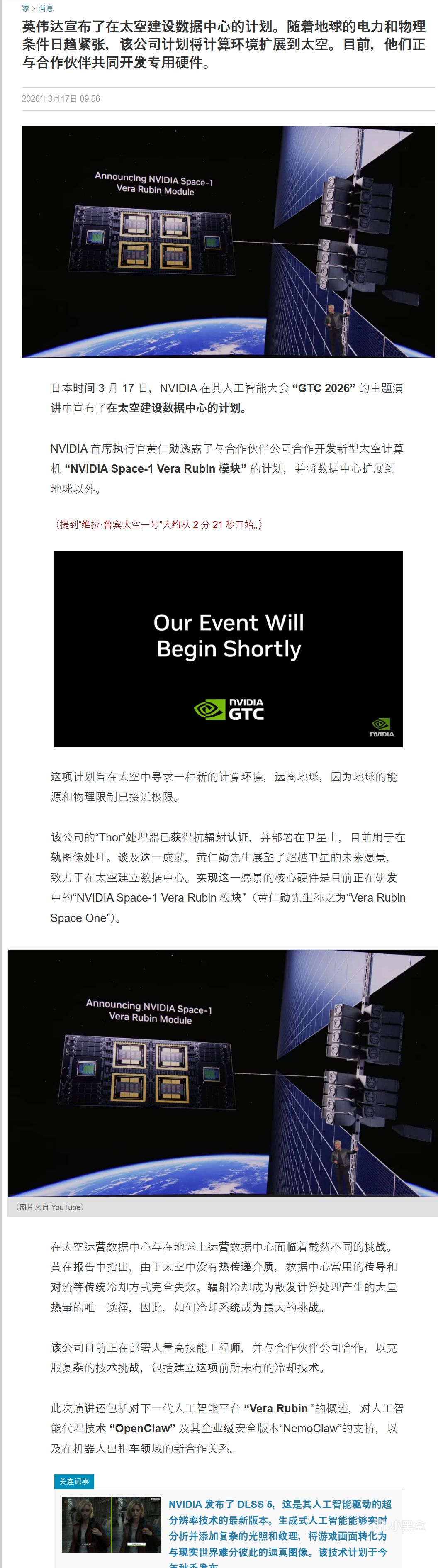 除了这个“流浪地球”式的基建计划,本次 GTC 还全方位展示了次世代 AI 平台“Vera Rubin”,以及专门给 AI 智能体准备的 OpenClaw 技术。英伟达显然不满足于只当“卖铲子的”,他们现在打算直接在轨道上建一座“算力空间站”,彻底打破地球物理条件的限制,把人类文明带入纯粹的星际 AI 时代。