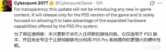 這次更新只針對 PS5 版本,而且是完全免費的技術升級,核心就是讓遊戲能喫透 PS5Pro 的硬件性能,畢竟這臺主機的 GPU 性能比原版提升 45%,光追效果更是翻倍,剛好能讓夜之城的霓虹更清晰、幀率更穩定。