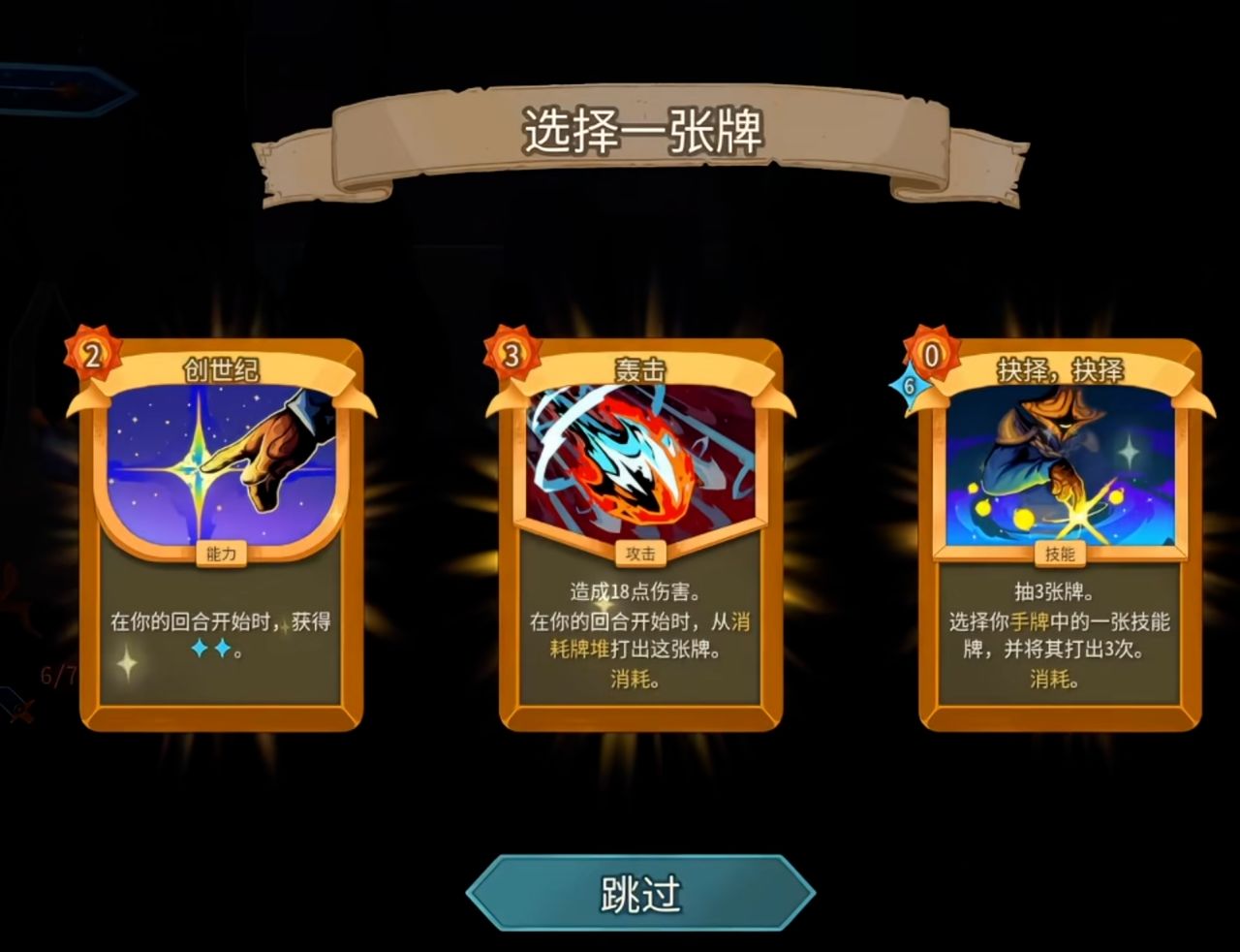 打完一层BOSS再来一张抉择抉择,跟铸剑者的小爆发有了,不过还缺星星卡。