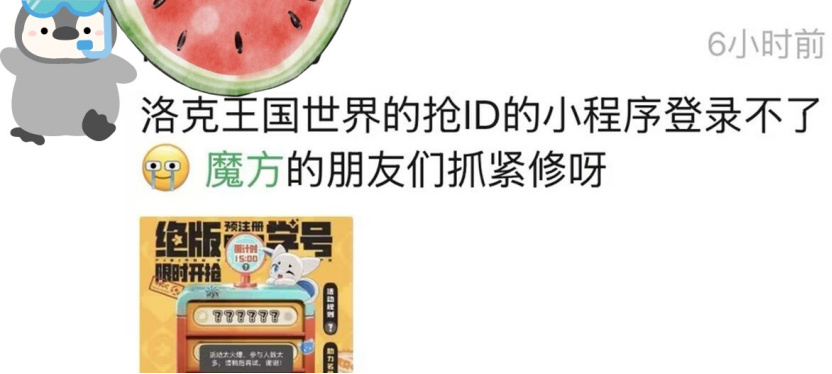 3月17日,《洛克王國:世界》開啓預註冊,也就是提前搶學號。結果剛到點,小程序竟然“崩”了,社交平臺上到處是“進不去”“有人搶到了嗎”的評論。以騰訊身經百戰的過往積累,到這年頭還能把它準備給擠爆的產品,着實是罕見了。