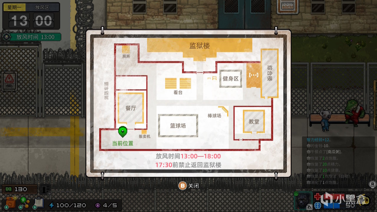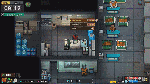 应该说本作的核心是“时间管理”。在游戏中玩家的所有行动(产生交互才算,走路跑图不会计入)都会消耗时间,而监狱的一天是由起床-自由行动-午餐-放风-晚餐-自由行动-宵禁这数个时间段构成的,不同时间段玩家能活动的场景有区别。