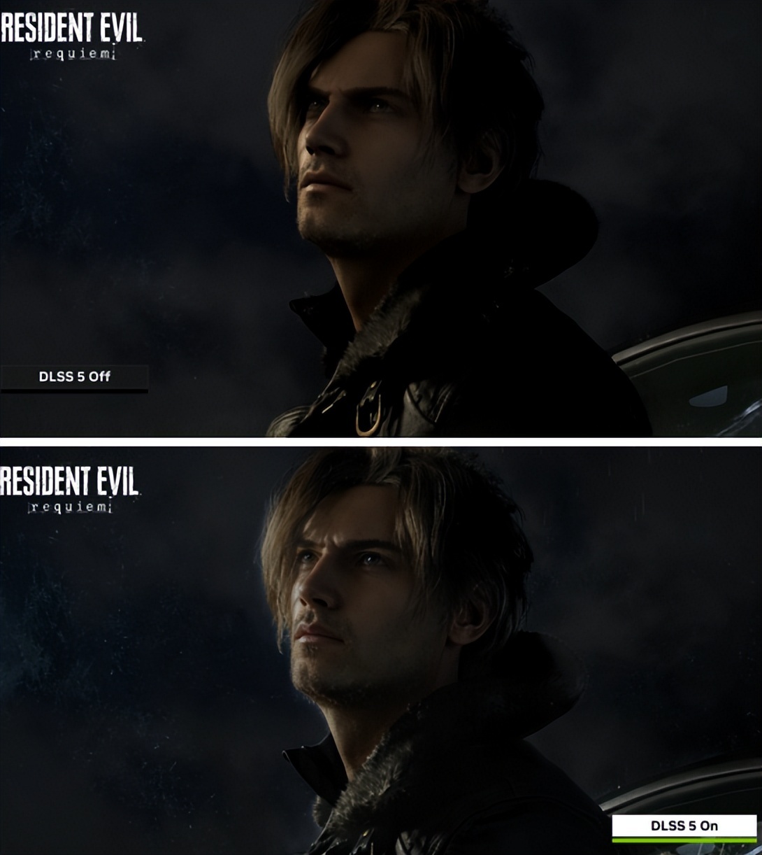 看完刚才的画面前后对比,你应该也注意到了一件事:游戏角色的长相,似乎也随着DLSS 5的开启,发生了显著改变——原本尚显稚气的格蕾丝,直接从职场新人被爆改成了脸部线条分明的精英白领,画风都不一样了。